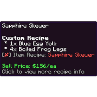 | Recipe | Ingredient | Fuel Cost | Sell Price |