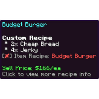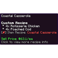 * Custom Recipes require special recipes to craft | * Custom Recipes require special recipes to craft | ||