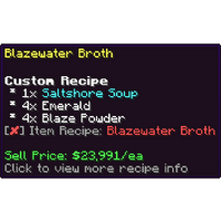 | Cured Nether Wart | Harvested Nether Warts | 50 | $97.50 |