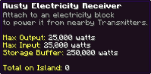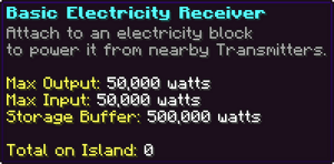 Electricity introduces a powerful new way to energize your island’s automation. By generating Watts through a central Generator and distributing power wirelessly with Transmitters, Receivers, and Batteries, players can fuel Auto Bots, extend power networks, and unlock advanced movement options like Turn Tables. From improved efficiency to fully electrified automation paths, Electricity brings a shocking upgrade to island engineering. | |||