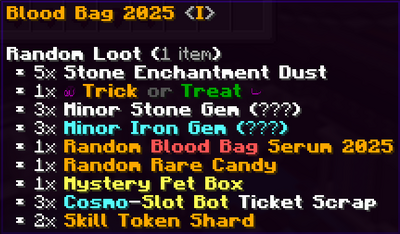 Here you can see the Loottables of each of the 5 Tiers of Blood Bags.
