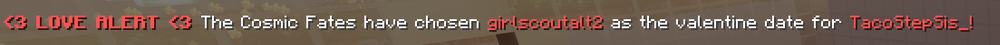 Back again this year for some Cosmic Matchmaking! The Cosmic Fates will select two random Cosmonauts every few minutes and announce the pair in chat!